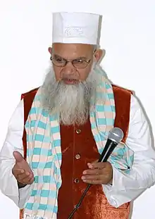 Syed Mohammed Madni Ashraf often referred to as Shaykh al-Islām,[4][5] and Madni Miyan[6][7][8] (born on 27 August 1938 CE; 1 Rajab 1357 AH) is an Indian Islamic scholar,[9] theologian, spiritual leader[10] and author from Ashrafpur Kichhauchha, Uttar Pradesh, India.[11][12] Known for his eloquent speeches, he is an expert of Islamic Philosophy, Islamic Sacred Law and Fiqh (Jurisprudence). [9]