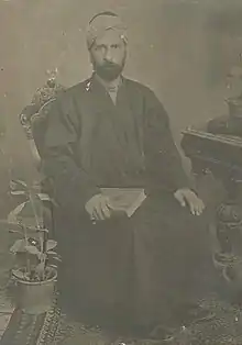 Mírzá Muḥammad Muṣṭafá al-Baghdádí (1837/8—1910) was a prominent Iraqi adherent of the Baháʼí faith and one of 19 Apostles of Baháʼu'lláh.[1][2][3] Mustafá was among the leading Baháʼís in Iraq until he moved to Beirut in the late 1870s, where he coordinated pilgrims going to see Baháʼu'lláh in ʻAkká, and later he was involved with the movement of the Báb's remains to ʻAkká.[4][1]