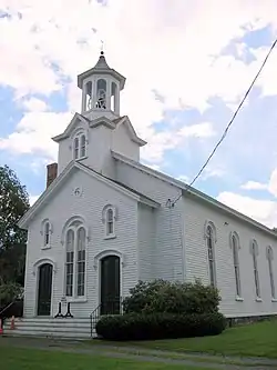 The visual focus of the district is the Reformed Church of Schodack (1876). Also in the district are a variety of residential buildings dated to the 18th and 19th centuries in the Greek Revival, Federal, and Dutch styles.[2] The district formed partly in response to the development of mills running on hydropower generated by the Muitzes Kill [3] and the remnants of at least one of these mills is still visible along that stream. Although the district is still notable for the preservation of 18th and 19th century structures, several late-20th century residences have been added (such as modular homes). In addition, by 2007 a proposal had been made to develop a tract of land at the southwest corner of Schodack Landing and Muitzeskill Roads to accommodate 30 to 40 new residences.[4][5] This development would be immediately adjacent to three structures in the district, including the mid-18th century Kittle House and the Reformed Church. However, no construction has occurred to date.