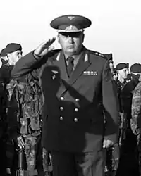 Mukhtar Qapashuly Altynbayev (Kazakh: Мұхтар Қапашұлы Алтынбаев, Mūhtar Qapaşūly Altynbaev; born December 10, 1945, in Karaganda, Kazakh SSR, Soviet Union) served as the Minister of Defense and General of the Army of Kazakhstan twice, most recently from December 2001 to 10 January 2007. Prime Minister Karim Massimov replaced him with former Prime Minister Daniyal Akhmetov in a political shakeup.