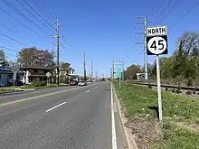 Route 45 is a state highway in the southern part of New Jersey. It runs 28.51 mi (45.88 km) from Route 49 in Salem, Salem County, northeast to U.S. Route 130 (US 130) in Westville, Gloucester County. The route is signed as a north-south highway. Much of the southern part of the route runs through rural areas of Salem and Gloucester counties, passing through the communities of Woodstown and Mullica Hill. North of Mullica Hill, Route 45 runs through suburban areas, with the portion of the route between the northern border of Mantua Township and the southern border of Woodbury a four-lane divided highway. The route intersects many highways, including US 40 in Woodstown, Route 77 and US 322 in Mullica Hill, and Interstate 295 (I-295) in West Deptford Township.