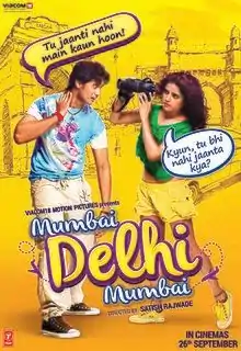 Mumbai Delhi Mumbai is 2014 Hindi language Indian romance-comedy written and directed by Satish Rajwade for Viacom 18 Motion Pictures. The film, adapted from Rajwade's 2010 Marathi movie Mumbai-Pune-Mumbai,[1][2] stars Shiv Panditt and Pia Bajpai,[3] and released on 5 December.[4]