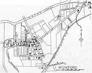 The hamlet of Mumford lies on the western side of the Town of Wheatland, Monroe County, New York, United States, south of Oatka Creek on NY 36 and south of the terminus of NY 383.