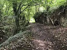 Jones and Mitchell frequently met via one traversing through a stretch of woodland to meet the other. A section of this woodland is known as Roan's Dyke Path.[18]