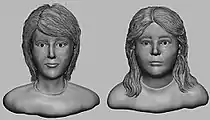 Beginning in the 1990s, several forensic facial reconstructions of the decedents were created and released to the media depicting reconstructions of just how the two decedents may have physically appeared in life. Initially, these reconstructions had been in the form of clay sculptures created using three dimensional photographs of the victims' skulls to create forensic models of the physical appearances of their faces. With advances in technology, these clay sculptures would be replaced by digital reconstructions of the decedents—still believed to have been a male and a female—that were released to the media in the early 2000s.[38][39][n 7]