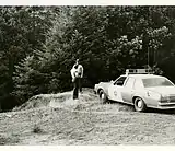 Mendocino County police officers at the location where the bodies of Graham and Trimble were discovered, July 8, 1979