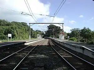 Muri railway station is a former railway station was on the North Island Main Trunk Railway (NIMT) in Pukerua Bay, New Zealand; part of the Kapiti Line section of the suburban rail network of Wellington. The station was double tracked with side platforms on a straight section between two curves, 31.2 km from Wellington railway station, the southern terminus of the NIMT.