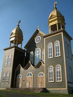 The museum is located on the south side of United States Route 1 in the rural village center of Grand Isle. A former church, it is a large wood-frame structure with a basically rectangular footprint, extended to the rear by additions. The main section of the building has a steeply pitched gable roof with a clerestory top. The building's most interesting features are found on the complex facade, which projects from the main section, and is divided into three sections. The outer sections are identical square towers, which rise two full stories to an open belfry supported by an arcade of eight Corinthian columns, which support a Baroque dome. The central section has three double-door entries, each surmounted with a half-round window, and topped by a gable at the first floor level. Most of the building's windows are narrow with round-arch topps, and consist of paired round-arch sections with a circular motif at the top.[2]