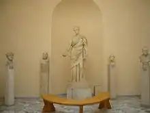 ![]() A female statue and male busts in the Archaeological Museum of Ostia. |