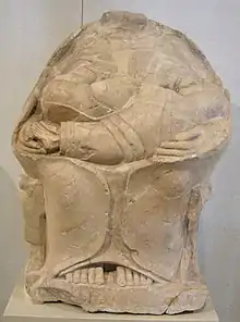 - a limestone kourotrophos, a headless female statue, holding two twins, which was found at Megara Hyblaea.[4]
