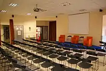 The Documentation Centre is located on the first floor of the building. It has a conference hall with 70 seats, a library with about 3000 media items and three computer terminals. The research work is carried out not only in cooperation with local institutions and experts, but also within the framework of international projects and in cooperation with the partner institution, the Ebensee Museum of Contemporary History.