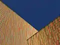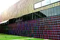 The building with its long, two-storey, rectangular structure and multi-coloured facade composed of 36,000 vertical ceramic louvres in 23 different coloured glazes, was created by Sauerbruch Hutton architects and is located next to the Pinakothek der Moderne in the Kunstareal. The building has three exhibition areas which are connected by stairs. All galleries (with the exception of the Media Suite) have white walls and wooden floorboards of Danish oak.