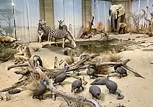 The museum defines its mission as "researching and explaining the diversity of species of Earth". The main exhibition is titled "Unser blauer Planet - Leben im Netzwerk" (Our blue planet - living in a network). It shows complex ecological systems through dioramas of the African Savannah, a tropical rain forests, the polar regions, deserts and Central Europe.[5]