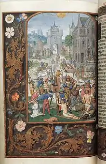 Page from the Mayer van den Bergh Breviary, depicting The torture of multiple saints