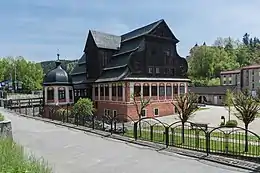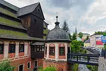 The paper mill is one of the most architecturally valuable industrial monuments in Europe. It is characteristic for its shingle roofing trimmed with a baroque volute from the west and the original entrance pavilion and the 17-19th century wall paintings in the interior. The tradition of papermaking in Duszniki dates back to the 16th century; the first record about the paper mill comes from 1562, and tells about the sale of his shares in the moulding room by Ambrosius Tepper to Nicolas Kretschmer.