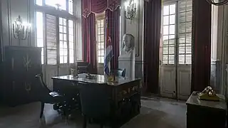 The Presidential Palace was designed by the Cuban architect Rodolfo Maruri and the Belgian architect Paul Belau [1][2] who also designed the Centro Gallego, presently the Gran Teatro de La Habana. The Presidential Palace was inaugurated in 1920 by President Mario García Menocal. It remained the Presidential Palace until the Cuban Revolution of 1959. The building has Neo-Classical elements and was decorated by Tiffany Studios of New York City.