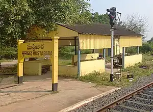 Mustabada railway station (station code:MBD[1]) is an Indian Railways station is located in Mustabada, Vijayawada and a satellite station of Vijayawada in Andhra Pradesh. It is situated on Duvvada–Vijayawada section of Howrah–Chennai main line and is administered by Vijayawada railway division in South Coast Railway zone.[2] There is also a proposal for a special bypass line to connect the station with Rayanapadu for freight transport.[3]