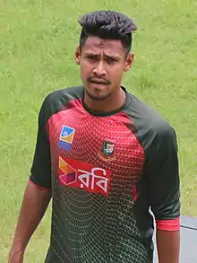 During the Asia Cup held in the next month, he was again sidelined from the team due to his side strain,[44][45] playing only the first three games.[46][47][48][49] He was able to play against Australia, India and New Zealand in the 2016 ICC World Twenty20 held in India in March.[50][51][52] He became the first Bangladeshi bowler to grab five wickets in the history of T20 World Cup after taking five wickets for 22 runs against New Zealand.[53] He took total of 9 wickets in three matches in the 2016 edition.[54] He was named as 12th man in the 'Team of the Tournament' for the 2016 T20 World Cup by the ICC.[55]
