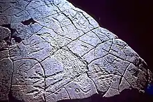 Rock art at Mutawintji National Park. Etched stone emu. 1976
