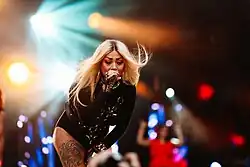 Buena performing as part of  Mutya Keisha Siobhan at Manchester Pride in August 2013