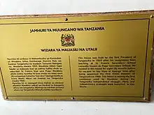Plate at Mwalimu Nyerere Memorial House, Mzimuni, Kinondoni MC, Dar es Salaam