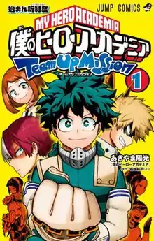 My Hero Academia: Team-Up Missions (Japanese: 僕のヒーローアカデミア チームアップミッション, Hepburn: Boku no Hīrō Akademia: Chīmu Appu Misshon) is a Japanese superhero manga series written and illustrated by Yōkō Akiyama. It is a spin-off to Kōhei Horikoshi's popular manga series My Hero Academia. It was serialized in Shueisha's Saikyō Jump in July 2019, with its chapters, which are released on a monthly basis, additionally collected into five tankōbon volumes as of June 2023.