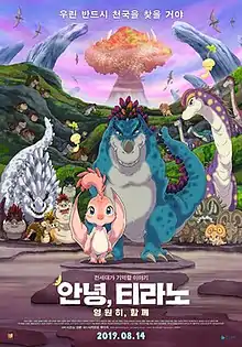 My Tyrano: Together, Forever (Japanese: さよなら、ティラノ, Hepburn: Sayonara, Tyranno) is a 2018 Japanese–Korean animated film directed by Kōbun Shizuno. A joint production between South Korea, Japan and China, it is based on the 11th book in Tatsuya Miyanishi's Tyrannosaurus series. It made its world premiere in the Open Cinema section at the 23rd Busan International Film Festival. The scoring of the film is by the prominent Japanese musician Ryuichi Sakamoto.[5][6][7]