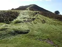 Mynydd Llangorse is a hill on the western edge of the Black Mountains in the Brecon Beacons National Park in Powys, south Wales. It lies two miles east of Llangors and its lake and 5 miles south of Talgarth. Its summit at 515m (1690 feet) overtops the location 600m to the south at which a trig point is sited by 9m. The broad spur of Cefn Moel extends south towards the village of Bwlch whilst a spur to the southeast forms Pen Tir which reaches just over 450m above sea level.[1] It is a Marilyn with a prominence of 161 metres.