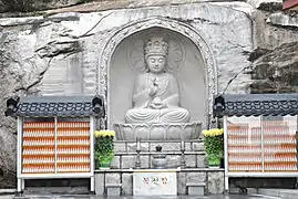 Although Myogaksa is situated on a rather small piece of land in a residential district, its structural integrity is evident in the layout of such structures as Daebulbojeon, Wontongbojeon, Nakga Seon Center, Seokguram, Mountain God Shrine and an Avalokitesvara image carved into the mountain cliff.