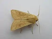 Mythimna vitellina, the delicate, is a moth of the family Noctuidae. The species was first described by Jacob Hübner in 1808. It is mainly distributed throughout southern Europe and the southern part of eastern Europe. It is also found far less commonly further north in Europe. Also in North Africa, the Near East and Middle East, Central Asia and western China.