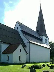 The oldest part of the presently visible church at När is the tower, erected at the middle of the 13th century. Originally, it was designed to be able to function as a defensive tower, with arrowslits still visible on the first floor. The present nave and choir of the church were added to the tower around the year 1300. Of an earlier, Romanesque church on the same site no traces remain today.[1]