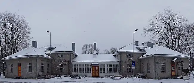 Nõmme railway station (Estonian: Nõmme raudteepeatus; first name in German Haltestelle auf der 7. Werst and in Russian Oстановочный пункт на 7. версте, after 1874 in German Nömme and Russian Неммe) is a railway station in Nõmme, Tallinn, Estonia. The station serves the Nõmme sub-district which has approximately 6600 residents.