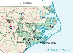 North Carolina's 3rd congressional district is located on the Atlantic coast of North Carolina. It covers the Outer Banks and the counties adjacent to the Pamlico Sound.