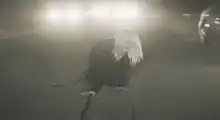 The one-shot video features Eilish walking at a dark night on a dimly lit desert road,[37][54][49][64] wearing black clothes.[86] While the song's verses are playing, a group of shadow figures follow behind her, but when she looks behind her, they disappear.[54] Additionally, the clip features numerous images of the artist's face in foreground played several times throughout the verses.[19][43] During the chorus,[49] 25 stunt drivers race around the singer,[79][130] creating clouds of tire smoke.[37] At one point in the video, she falls on her knees.[131] The music video ends with an exhausted Eilish knowingly staring into the camera.[85]