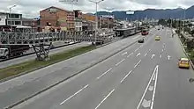 The simple station NQS Calle 38 A Sur is part of the TransMilenio mass-transit system of Bogotá, Colombia, opened in the year 2000.