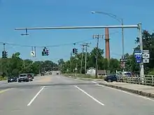 NY 15A northbound at I-390 in Brighton. The Erie Canal and the city of Rochester are in the background.