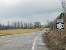 New York State Route 221 (NY 221) is a state highway in Cortland County, New York, in the United States. Its western terminus is at an intersection with NY 38 in the town of Harford. The eastern terminus is at a junction with NY 26 and NY 41 in the town of Willet. Near its western end, NY 221 intersects New York State Route 200. Together, NY 200 and NY 221 form a loop route off NY 38 between the hamlets of Harford and Harford Mills within the town of Harford. NY 221 originally followed modern NY 200 and ended at U.S. Route 11 (US 11) in Marathon when it was assigned as part of the 1930 renumbering of state highways in New York. It was extended to its present length by the following year and realigned to serve Harford later in the decade. NY 200 was assigned in the 1940s.