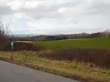 NY 245 begins at an intersection with NY 21 immediately in the northeastern portion of the village of Naples, located in the town of same name, in Ontario County.[3] Shortly after leaving the village, the route heads to the northeast along the base of a series of mountains delimiting the Canandaigua Lake valley, entering Yates County and the town of Italy before following the valley surrounding the West River at a fork in the primary valley near the southern end of Canandaigua Lake. NY 245 follows the eastern edge of the valley to the town of Middlesex, where it intersects NY 364 in the hamlet of the same name's center. NY 245 and NY 364 run concurrent for a block before NY 364 splits from NY 245 to ascend the eastern edge of the valley and continue towards Potter. North of Middlesex, the valley becomes less prominent as NY 245 progresses northward.[3][4] Near the Ontario County line, NY 245 turns northeast to serve the dual-county village of Rushville, located in the towns of Potter and Gorham. Within the village, NY 245 meets NY 247. The two routes embark on an overlap northward into Ontario County.[3][5]