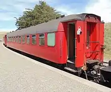 ![]() A NZR 56-foot carriage in service for the Dunedin Railways at Dunedin Railway Station | |