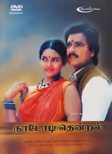 Nadodi Thendral (transl.The nomadic breeze) is a 1992 Indian Tamil-language historical romance film, directed by Bharathiraja and written by Sujatha. It stars Karthik and Ranjitha. The music was provided by Ilaiyaraaja. Featuring an international cast, the film was set in British India and was based on a love triangle between a goldsmith (Karthik), a gypsy woman (Ranjitha) and the district collector's sister.