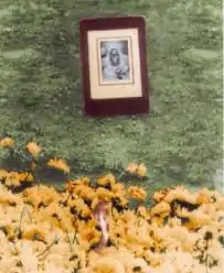 On the second day of Naga’s onset, a photographer came to take a photo of the Naga in its majesty but it was submerged under heaps of flowers.[2] No one had the courage to go near the spot where the cobra was lodged and clear away the flowers. The only course open to them was to pray. The Naga jumped out of the heaps of flowers and appeared for the photograph as if in answer to the prayers of the multitude. All who witnessed the sight were sure for the first time that it was on the week of Sai Baba. The devotees then prayed with fervor and faith to the Naga to clear out and enable them to resume their routine worship of Baba in the Madam. Then the immobile Naga showed sign of movement and went around Sri Sai Baba’s picture and slowly slithered out into the open and disappeared into the bushes where later an ant-hill (a snake’s natural habitat) appeared."