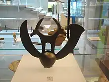 The Nahal Mishmar hoard is the hoard of archaeological artifacts found by a 1961 expedition led by Pessah Bar-Adon in a cave by Nahal Mishmar in the Judaean Desert near the Dead Sea, Israel. The collection wrapped in a straw mat found under debris in a natural crevice contained 442 objects: 429 of copper, six of hematite, one of stone, five of hippopotamus ivory, and one of elephant ivory. Carbon-14 dating of the mat suggests the date at least 3,500 BCE, i.e., it places the hoard into the Chalcolithic period.[1][2][3][4][5]