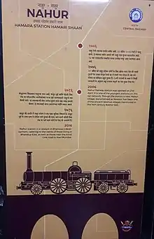 Nahur railway station falls under the jurisdiction of Central Railways and it was constructed to reduce the distance (between two consecutive train stations) between Bhandup and Mulund railway stations, which was quite large. Nahur has also helped in reducing the congestion in these stations, especially during the peak hours. Only slow trains halt at Nahur, as it currently doesn't have the provisions (or the need) to introduce platforms for fast trains. Nahur station was officially inaugurated on 21 April 2006.