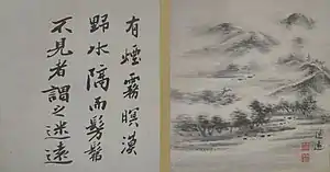 Nakabayashi Chikutō, originally Nariaki (Japanese:中林 竹洞; (1776, Nagoya - 27 April 1853, Kyoto) was a Japanese painter in the nanga style. His other art names include Chūtan (沖澹), Taigen’an (太原庵) and Tōzan Inshi (東山隠士).