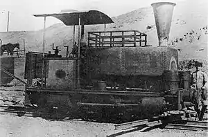 The Namaqua Copper Company acquired its first steam locomotive from Dick, Kerr & Company in 1901. It was named Pioneer and was constructed as a wood-burning 0-4-0ST locomotive with a balloon chimney which contained a spark arrester. The locomotive had a fuel rack mounted on top of the tank, ahead of the cab.[1]
