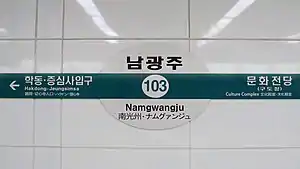 - 1 2 3 Line 1: Namgwangju, Gwangju Metro, archived from the original on September 24, 2015, retrieved April 12, 2012