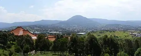 Looking over the temple out towards Mount Kembla and the Illawarra Escarpment