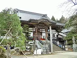 When the Nanbu clan relocated from Kai Province to their holdings in Mutsu Province in the early Muromachi period, they established their residence and clan temple in what is now the town of Nanbu.[1] During the Edo period, the area was controlled by Morioka Domain and later by Hachinohe Domain. Hirasaki and Muko villages were created with the establishment of the modern municipalities system on April 1, 1889. These two villages merged on April 20, 1955 to create the village of Nanbu. Nanbu was elevated to town status on February 11, 1959. On January 1, 2006, Nanbu merged with Fukuchi and Nagawa into the new town of Nanbu.