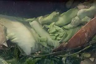 With the series "Decompositions" (2021), Macko synthesized longtime themes involving change and transformation, natural life cycles, metaphor and reality, through photographs of the contents of her garden compost pile that hovered between abstract, amorphous forms and recognizable organic scraps.[32] Critic Eleanor Heartney described them as arresting images of "in-betweenness," whose "delicious state of indeterminacy" evoked mysterious landscapes, human bodies, sea creatures, folds of fabric and art-historical referents such as Hieronymus Bosch and Jackson Pollock.[32]