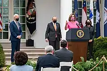 - ↑ Dan Mangan (December 15, 2021). "House Speaker Nancy Pelosi opposes banning Congress members from owning individual stocks: 'We're a free market economy'". NBC News. Retrieved December 16, 2021.